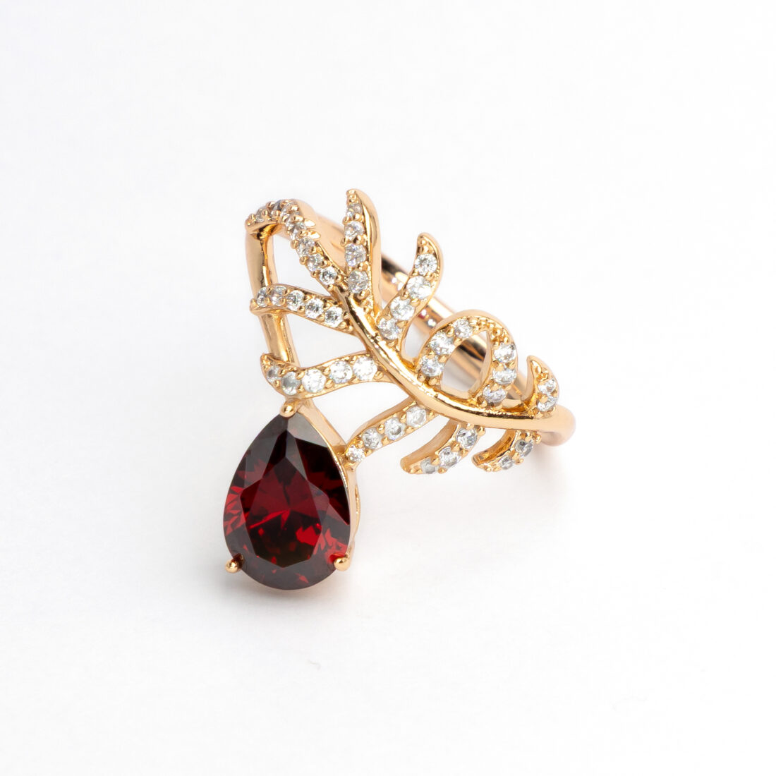Gredzens ar izteiksmīgu, daudzslāņainu dizainu un smalkiem kristālu akcentiem. Forma atgādina nagus, piešķirot rotai asāku un modernāku raksturu.