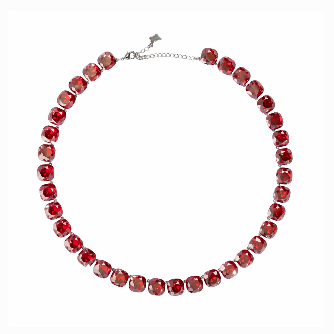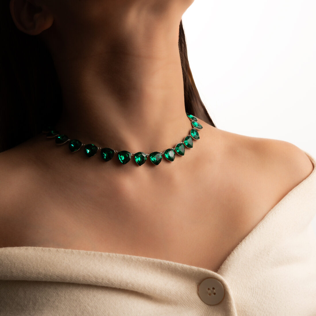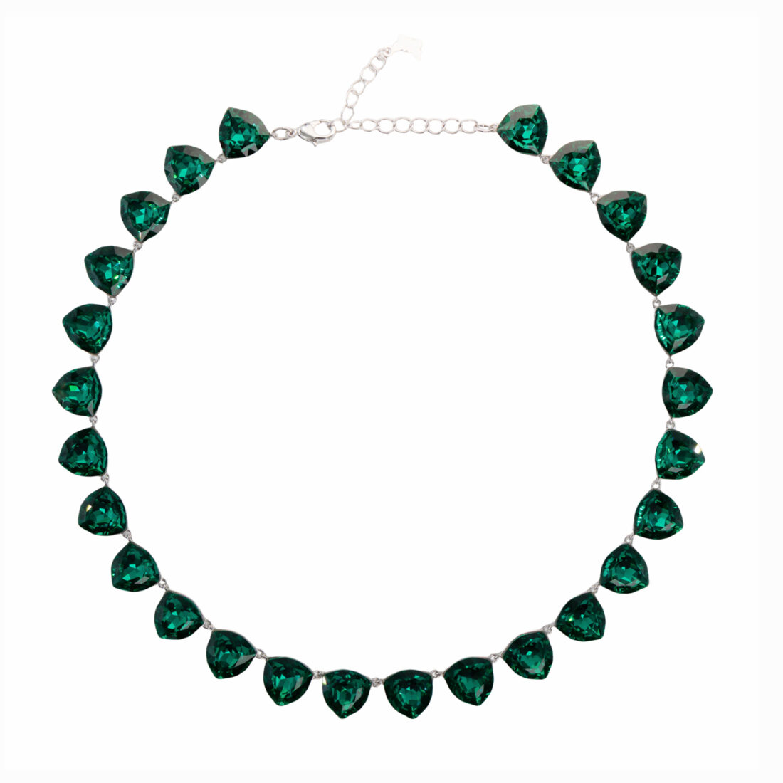 Grezna kaklarota ar sudraba pārklājumu un mirdzošiem kristāliem. Eleganta divkārša ķēde ar iespaidīgu asaras formas piekariņu.